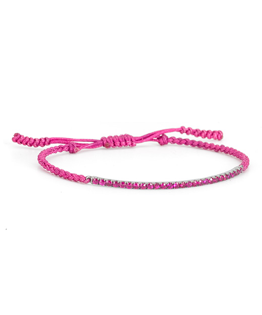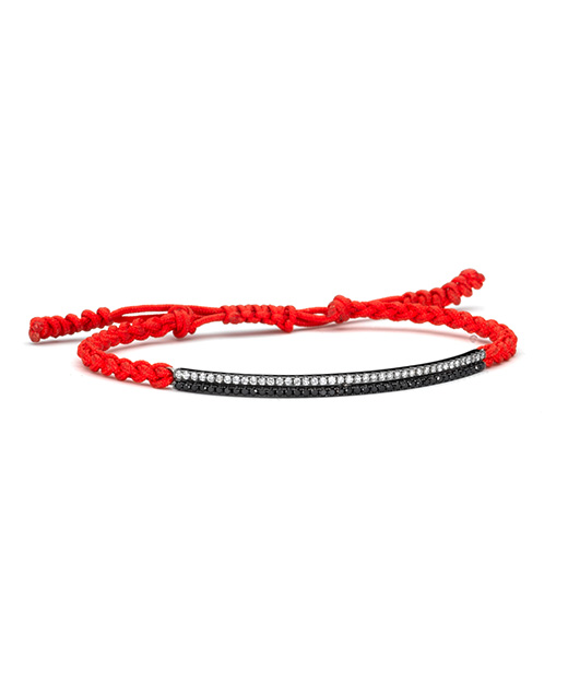 Intertwined bold red chords attached to a row of brilliant white diamonds set in white gold represent Friendship, Love and Luck. As seen on My Fair Wedding with David Tutera.
